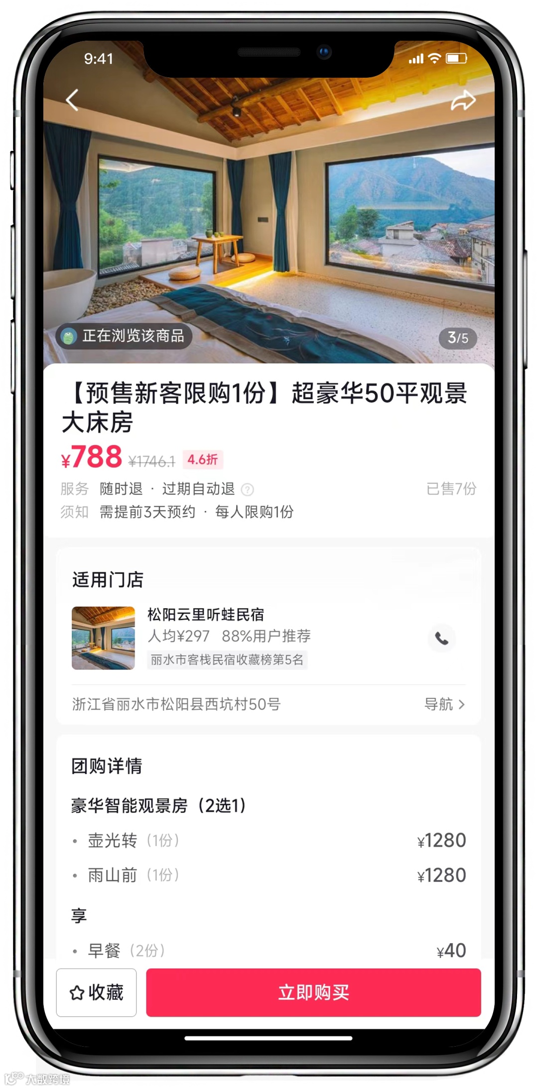 抖音上不仅有动态美景,更有动人团购。新客专享¥388双人套餐,不要说你和这美景距离有多远,只需一人¥194,小仙女们立马拥有!