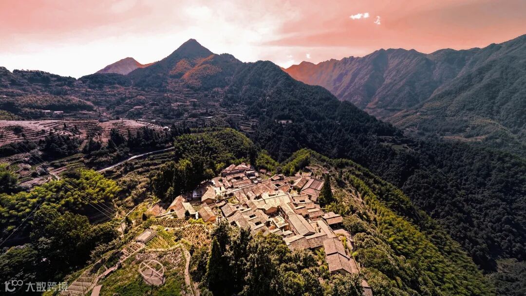 日出日落时分,梯田下的西坑,被群山遮住了日光,却又被天边晚霞沾染绚烂。