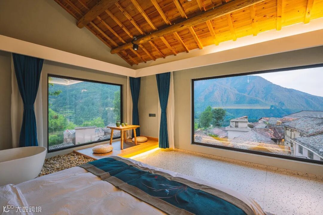 客房有双人标间、豪华大床和观景套房,屋内以简洁、宽敞、明亮的设计为主,大大的落地窗,揽尽山间美景。
