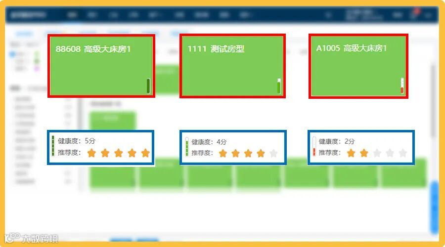 4、启用后,入住界面根据房间健康程度,自动生成红、橙、绿等不同颜色的指示条。前台据此健康排房,既高效便捷又健康科学。