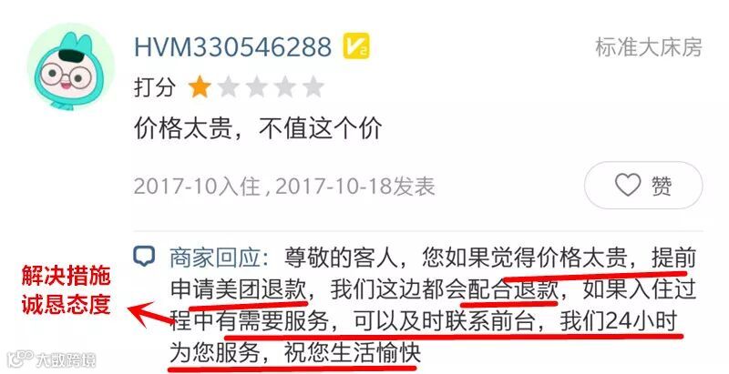 而且通过评论下的回应,也向消费者传达出酒店可靠可信赖的自身品牌形象!