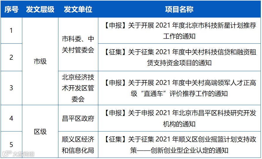 【征集】关于征集2021年度中关村科技信贷和融资租赁支持资金项目的通知