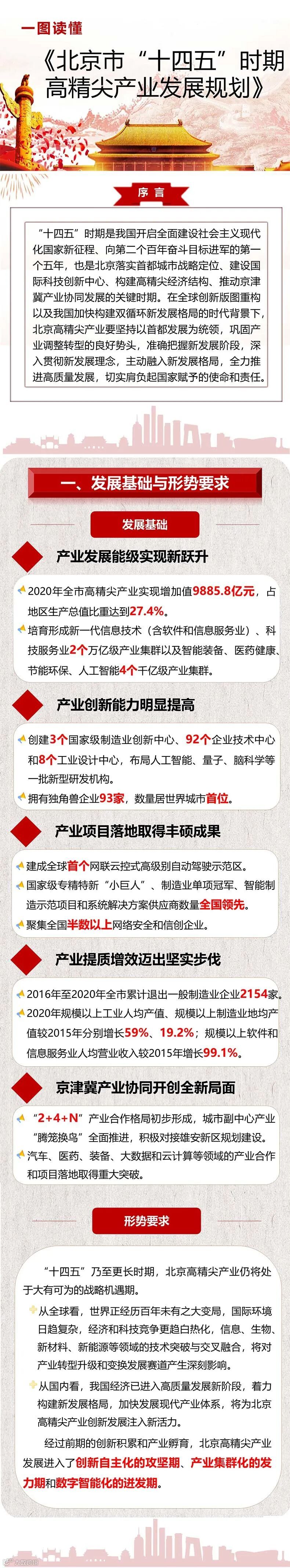 一图读懂丨北京市“十四五”时期高精尖产业发展规划