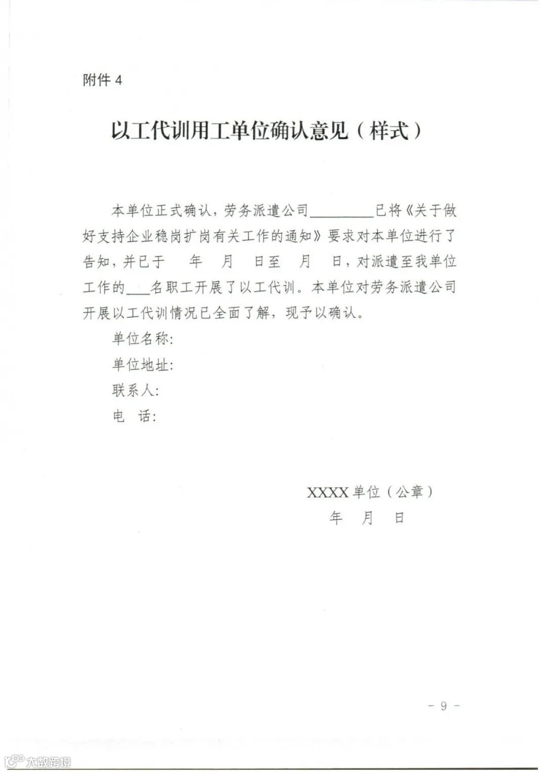 4.用工单位确认意见(样式)