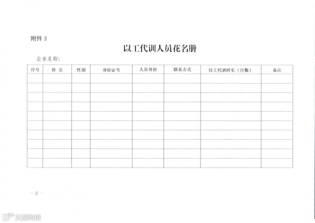 3.以工代训人员花名册