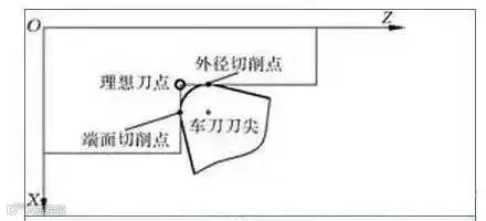 编程时,通常都将车刀刀尖作为一点来考虑,但实际上刀尖处存在圆角。当用按理论刀尖点编出的程序进行端面、外径、内径等与轴线平行或垂直的表面加工时,是不会产生误差的。但在进行倒角、锥面及圆弧切削时,则会产生少切或过切现象,如图所示。具有刀尖圆弧自动补偿功能的数控系统能根据刀尖圆弧半径计算出补偿量,避免少切或过切现象的产生。