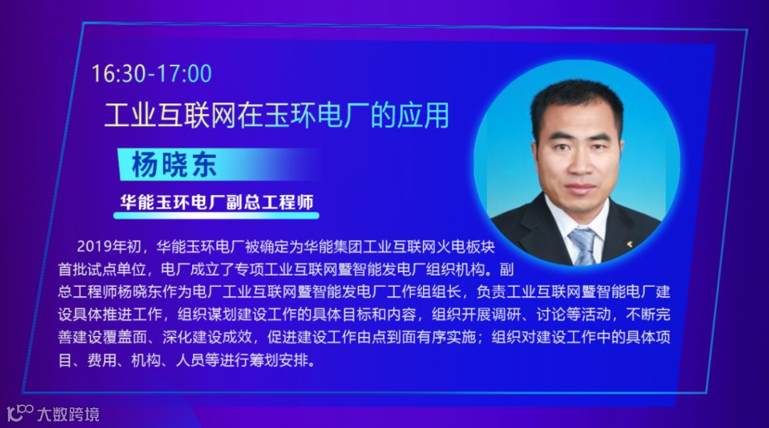 华能玉环电厂副总工程师 杨晓东老师,为论坛听众带来《工业互联网在玉环电厂的应用》的报告。玉环电厂紧扣现场实际,跨领域深度技术耦合,针对安全生产、设备运维、经营管理等环节精准发力,以效益和价值为导向,通过脱硫智能控制、脱销、电除尘及燃烧优化等实现了优化运行降本增效;通过智能仓储、基于区块链得供应链等实现了优化流程提升效率;通过智能安防系统,实现了人员及现场安全管控;通过炉管、煤 粉气流监测,浆液泵等劣化预警,实现了设备劣化、监测预警;通过辅助经营管理分析、实时生产经营系统实现了经营管理优化。