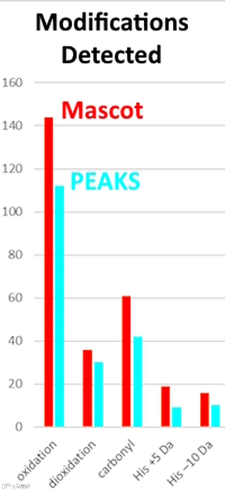 【本月文章】Mascot和PEAKS在鉴定FPOP肽段和修饰位点方面的相对性能。