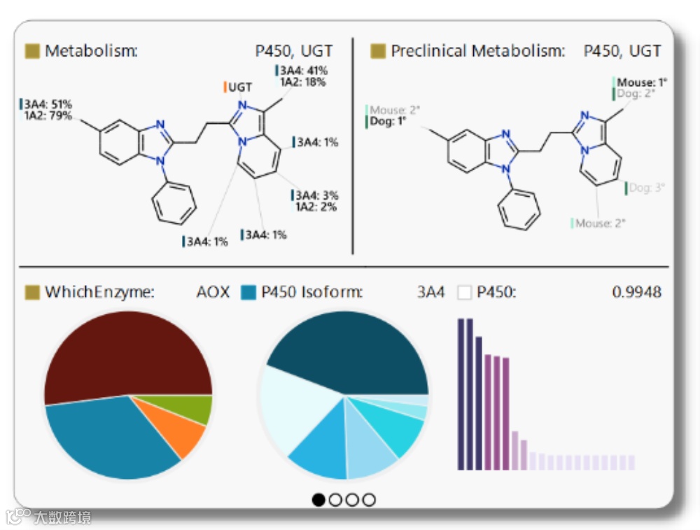 Metabolism模块有助于识别具有多条代谢途径的化合物,减少药物相互作用的风险,并提示最重要的代谢酶系,以确保实验测试能能够充分覆盖。