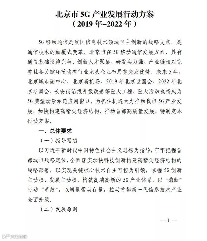 《北京市5G产业发展行动方案(2019年-2022年)》已经市政府同意,现印发你们,请结合实际认真贯彻落实。