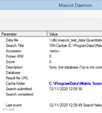 如果你在你的系统上看到了这个信息,而完整的信息可以让你更容易地找出问题的原因,你可以通过在Mascot Server上查看来获取全文。在Web浏览器中,从你本地的Mascot主页,单击链接到Database Status,然后是Error log。通过将日期和时间与客户端事件的日期和时间进行匹配,应该不难找到完整的信息。