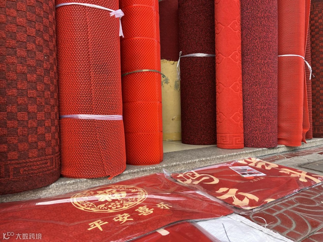 新年地毯也来换一波,从脚下一路红到顶。记者在走访市场上发现,沿街不少商铺都把新年红毯铺了出来,其中尤以入户地毯最为抢眼,上面印有“大吉大利”“平安喜乐”的字样,再配上可爱的兔子图案,摆在家里的入户门口,新年氛围拉满。