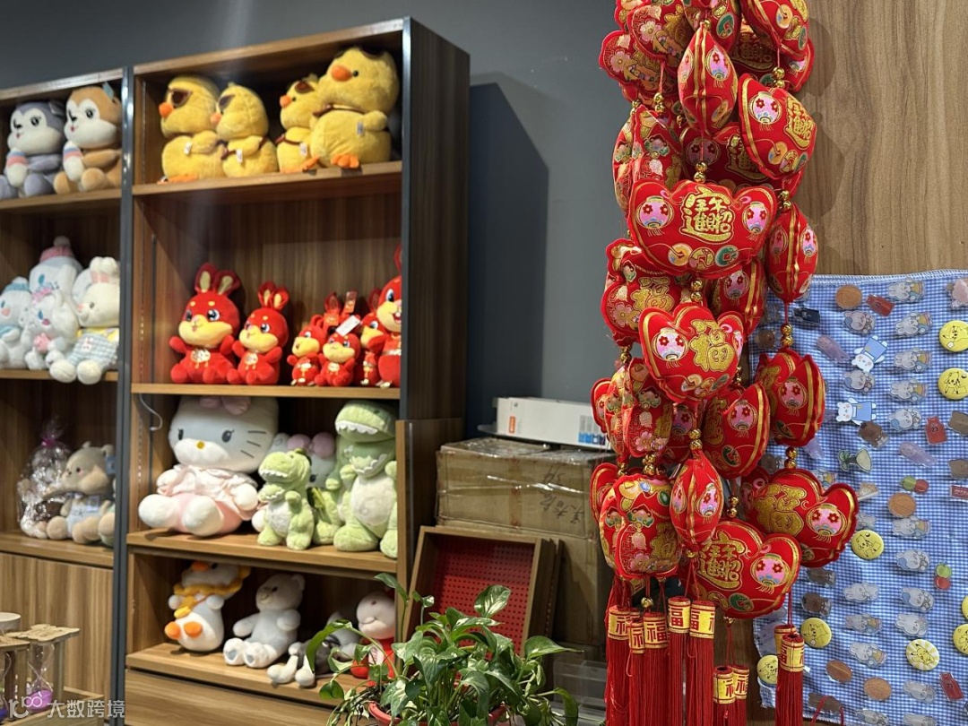 兔子造型的抱枕、发饰以及不同花色设计的红包。
