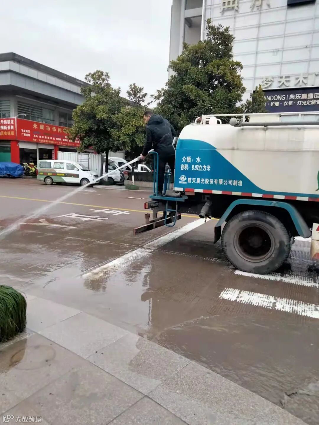 物业公司对市场区地面进行清洗,营造整洁干净的市场环境。