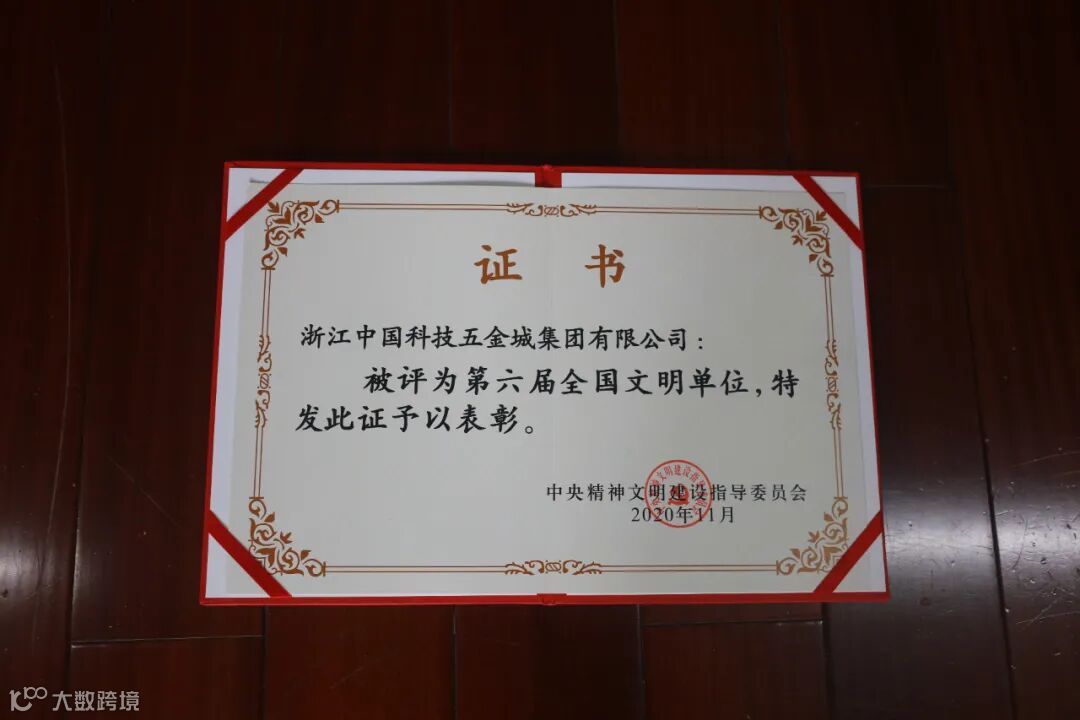 2020年11月20日,全国精神文明建设表彰大会在北京召开。中国科技五金城集团被中央文明委授予第六届“全国文明单位”荣誉称号。