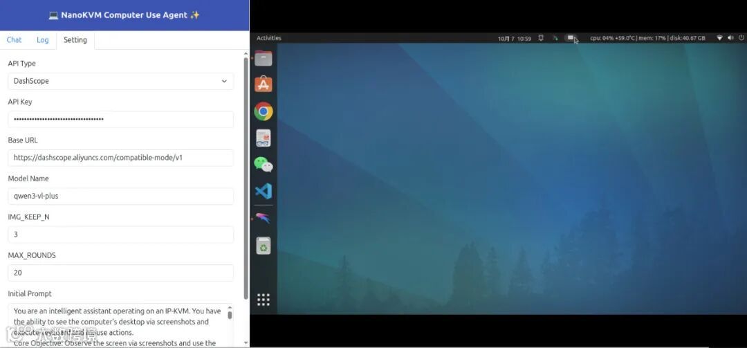 NanoKVM Pro引入了AI Agent的功能,可以使用当下热门的Computer Use Agent,可以通过自然语言自动化控制电脑。该应用已经内置,可以直接在Web页面选择体验。