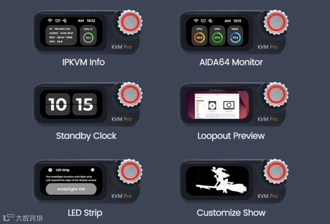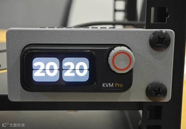 Desk这个版本就比较有意思了,带有一个阳极氧化的磨砂金属外壳,前面板有个1.47寸的触摸屏,可以显示KVM的各种状态信息,可以方便设置硬件功能,还能作为一个小的副屏使用。