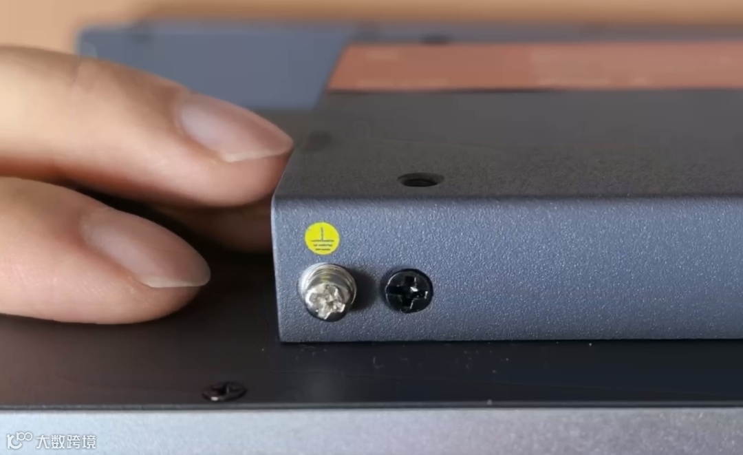 显示器底部有一个接地螺丝端子,可以接地线,防止漏电,毕竟这个显示器用的是金属外壳。