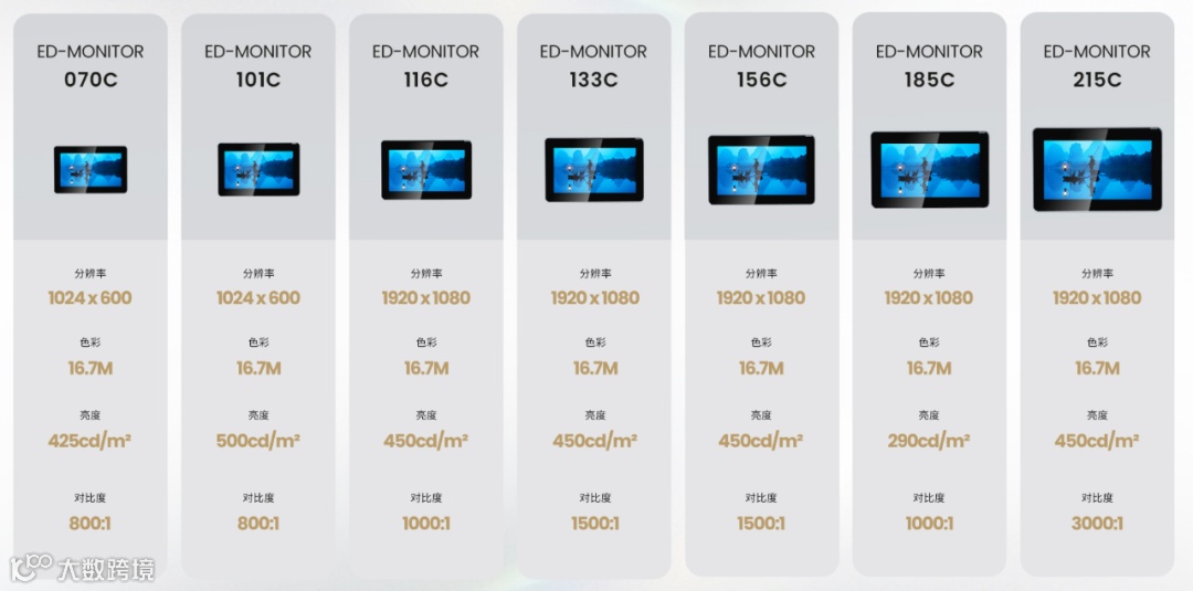 ED-Monitor还有11.6,13.3,15.6,18.5,21.5英寸的尺寸可以选。