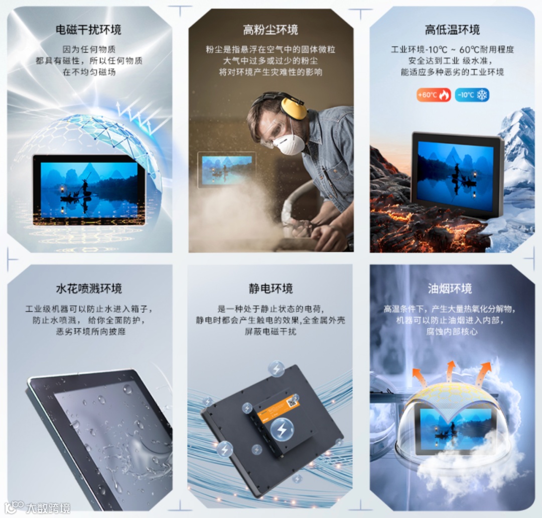 有了这些防护,显示器可以轻松在电磁干扰环境,高粉尘环境,高低温环境,水花喷溅环境,静电环境,油烟环境下轻松应对。