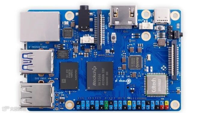 是树莓派3B的尺寸兼容版本,接口也非常相似,板载Wi-Fi5、蓝牙5.0,BLE5.0,M.2 M-Key固态硬盘接口(支持SATA和NVMe协议)以及eMMC模块接口。有一个千兆网口,HDMI2.0接口,MIPI-CSI,MIPI-DSI都有。