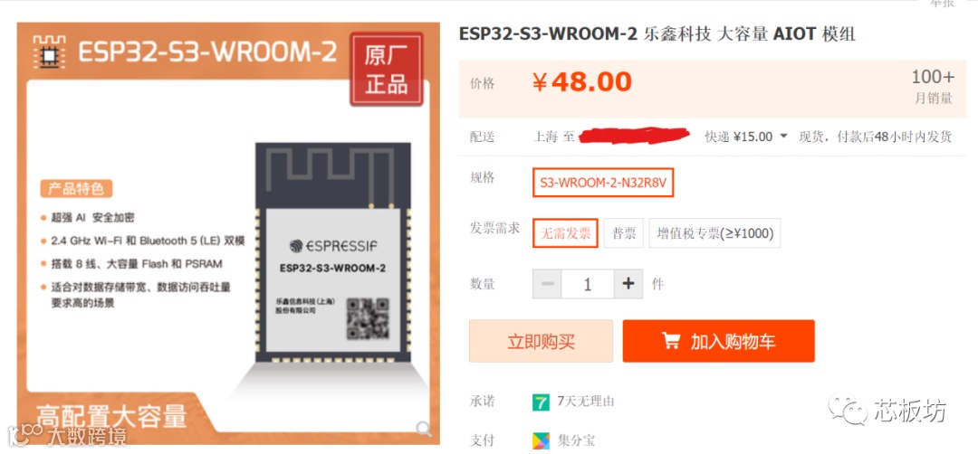 WROOM-2,乐鑫官方店铺有卖,8M PSRAM,32M Flash,售价48,邮费15,63块钱。这个目前仅适合土豪购买。