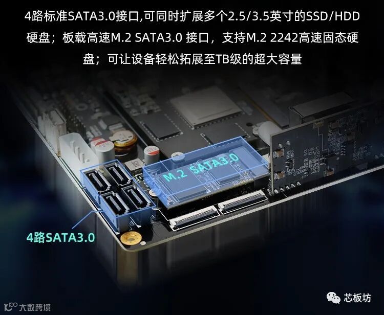 但是这次不但可以软路由,还可以NAS,自带4个SATA3.0接口,注意这可不是USB接口,而是可以直接插买回来的硬盘。并且还可以再插一根M.2 2242的固态硬盘。