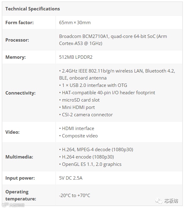 Broadcom BCM2710A1,四核 64 位 SoC(Arm Cortex-A53 @ 1GHz)