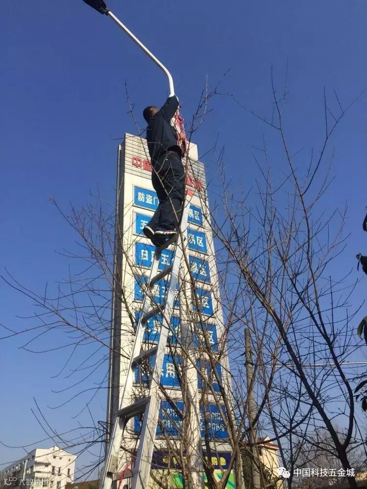 金城市场管理公司及时清理路灯、广告牌上横幅等残留物。