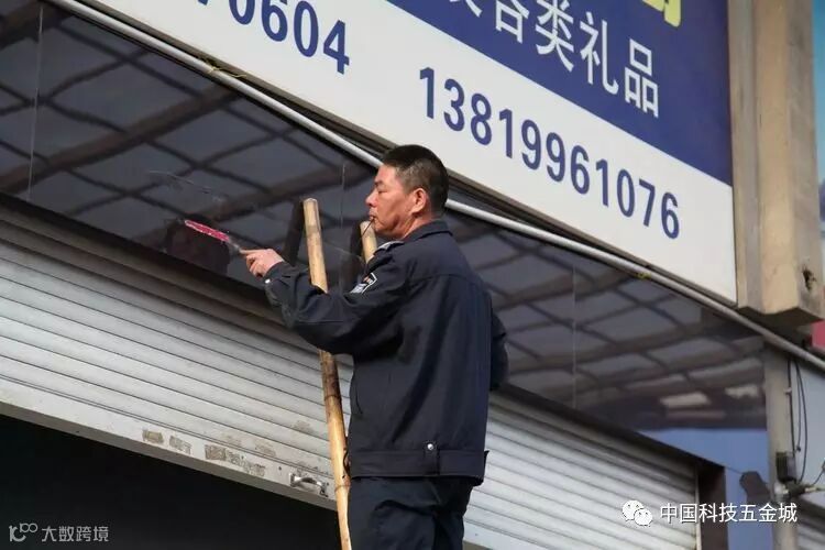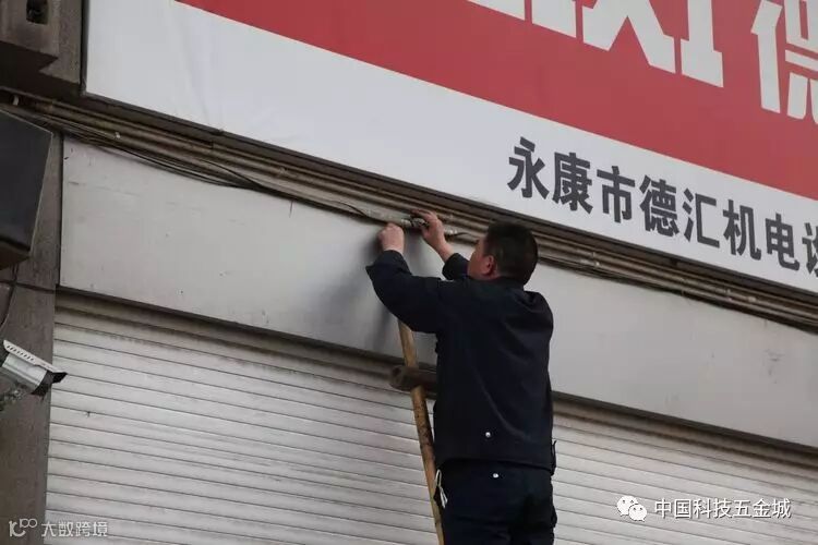 金都市场管理公司组织人员对商铺乱拉电线、残破广告进行一一清理。