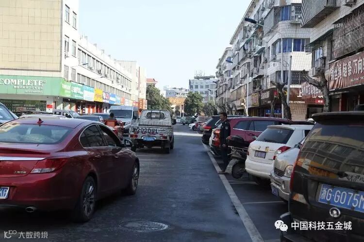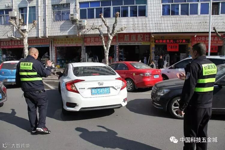 工作人员疏导因车辆停放不当而引发的交通堵塞