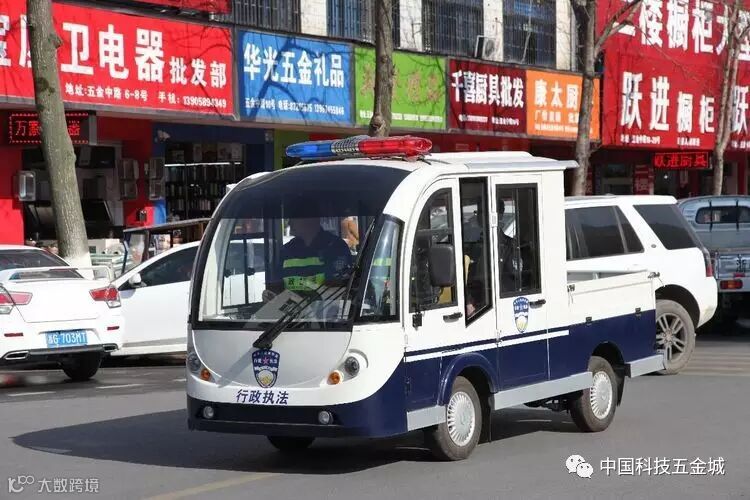 金城市场管理公司的治安车不断在市场内巡逻,阻止出店经营、车辆乱停放等违规行为。