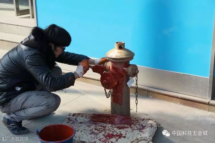 金盾保安公司工作人员对市场内消防栓一一进行刷漆保养