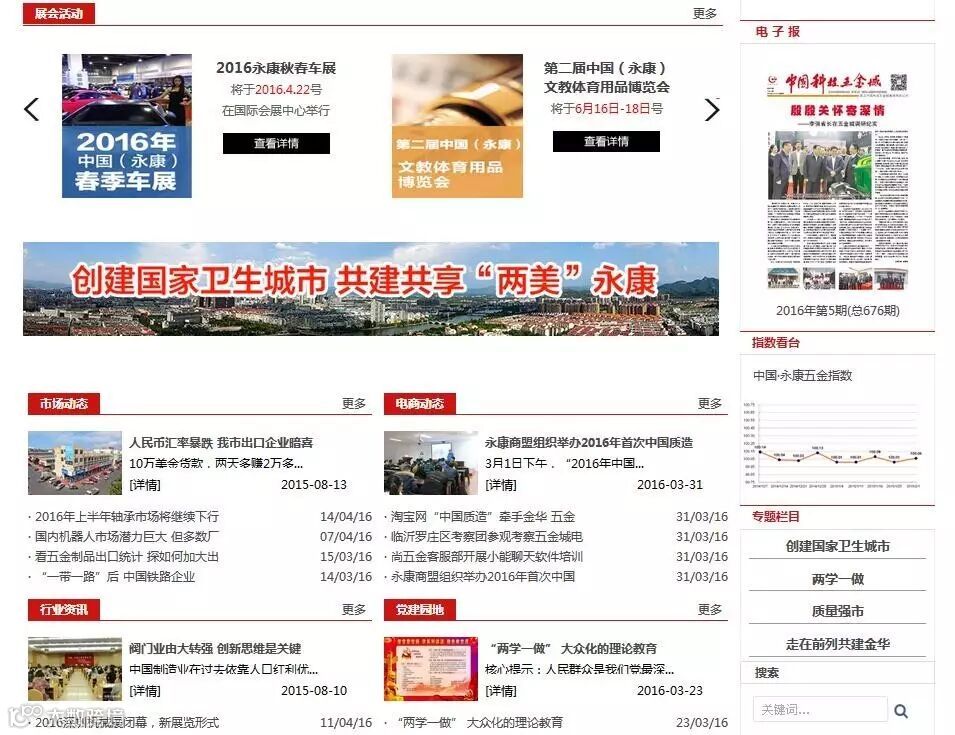着力优化集团官方网站:针对原来集团官方网站存在的模式混乱,功能有限,内容和版式不符合现有要求等不足,宣传信息部重新进行优化和设计,使网站分类更加细致明确。新版网站打造了“走进五金城”“市场主业”“电商产业”“会展产业”“五金指数”“市场党建”“旅游购物”七大主栏目,全面展示集团产业形象;设置“要闻发布”“市场动态”“电商动态”“行业资讯”“党建园地”等五个新闻栏目,内容上更加细化充实。