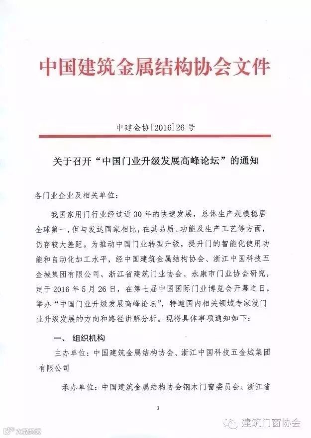 1、中国建筑金属结构协会钢木门窗委员会