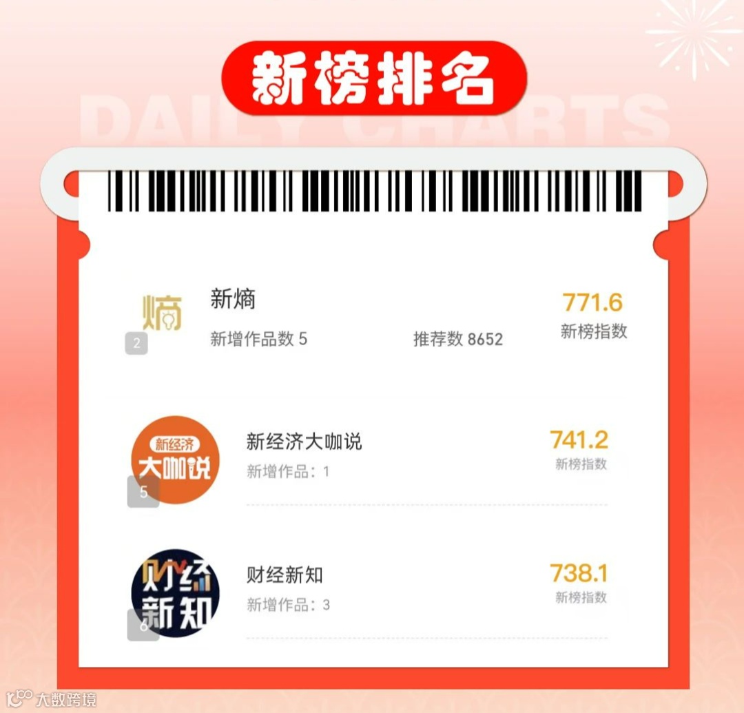 在新经济领域的账号影响力排名中,新知百略旗下的【新熵】、【新经济大咖说】和【财经新知】成绩亮眼。【新熵】在新榜排名中位居第 2,【新经济大咖说】与其他账号并列第 5,【财经新知】位列第 6,这三个账号凭借稳定的内容输出,在行业内影响力逐步提升。