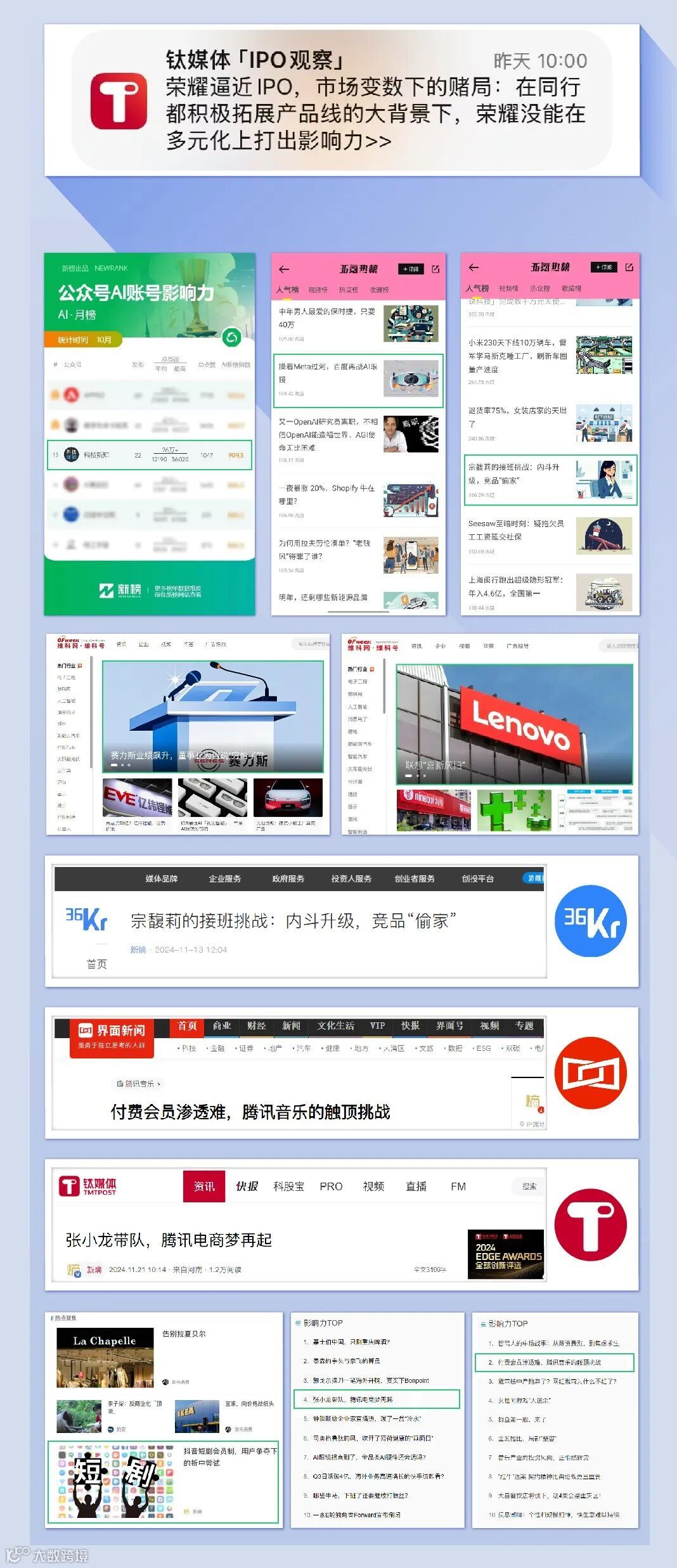 🚀外卖平台差评问题、宗馥莉接班、科沃斯陷同质化竞争、抖音短剧会员制、联想“喜新厌旧”、吉利告别品牌乱战、腾讯音乐的触顶挑战……