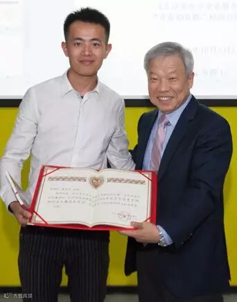 10月13日,启动仪式,北京大学研究生会副主席李成明为北京大学姜家齐博士颁发“创业导师”聘书