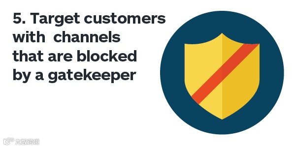 尽管你的产品的价值主张独一无二,但是却有个“守门员”拒你于众多付钱用户的千里之外。这个守门员也许是个人,也许是个公司,或者其他手握你走进该市场大门的钥匙的那么一个实体组织————且他们会竭尽所能的将你拒之门外。这就是为什么当前老牌的音乐媒体服务公司手持音乐内容版权的巨盾,一直把流媒体服务商往外推赶的原因了,同时这也是现在亚马逊和出版产业打得不可开交的原因所在。