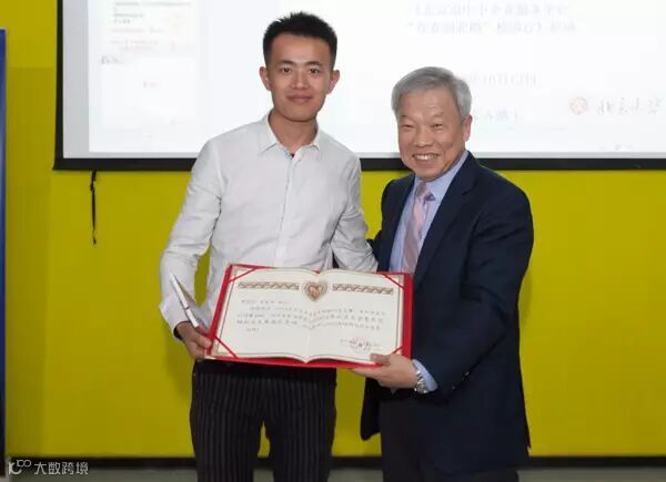 (图为北京大学研究生会副主席李成明为姜家齐博士颁发“创业导师”聘书,摄影:齐文VanChee)