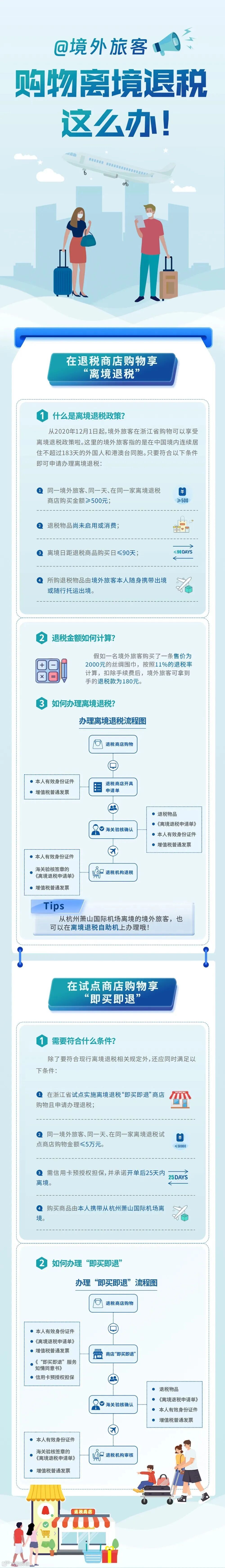 “即买即退”作为一项便利服务举措,是“离境退税”政策的升级优化,在已实施离境退税政策的地区,境外旅客在“即买即退”商店购买退税物品时,签订协议书并办理信用卡预授权后,即可在该商店现场申领与退税款等额的人民币款项,让境外旅客更加直观地感受到退税带来的实惠。