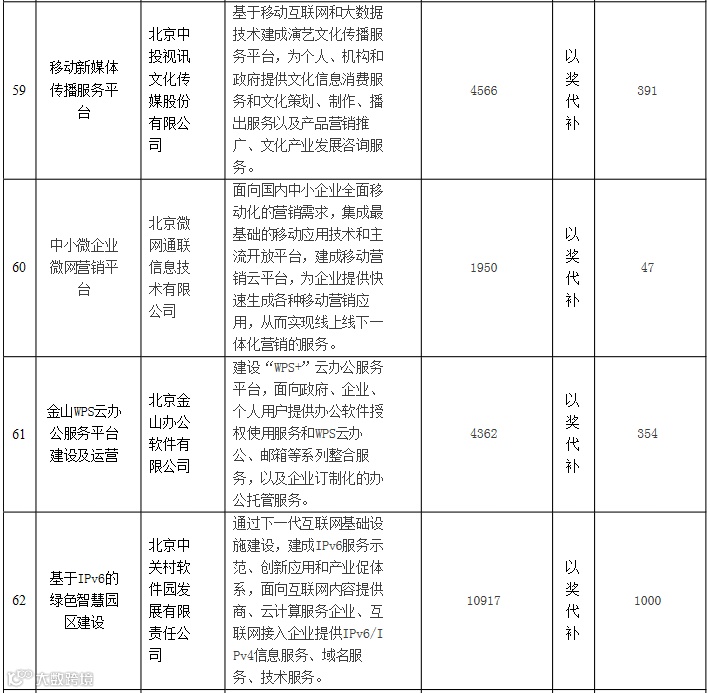 根据《财政部 发展改革委 商务部 科技部关于批复中关村现代服务业试点方案的通知》(财建函[2011]32号)及《中关村国家自主创新示范区现代服务业试点扶持资金管理办法》有关要求,北京市确定了中关村现代服务业2015年试点项目77个,现将项目名单予以公示。