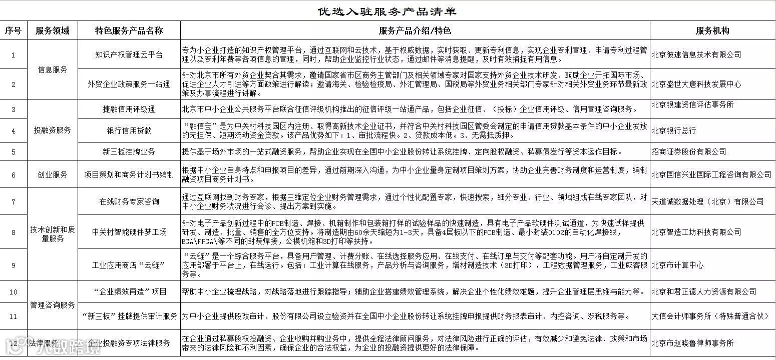 预告:(周一)优选入驻服务产品清单