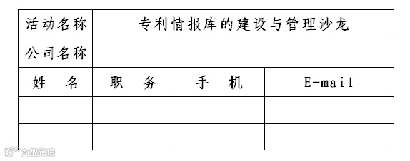 【活动通知5】专利情报库的建设与管理沙龙