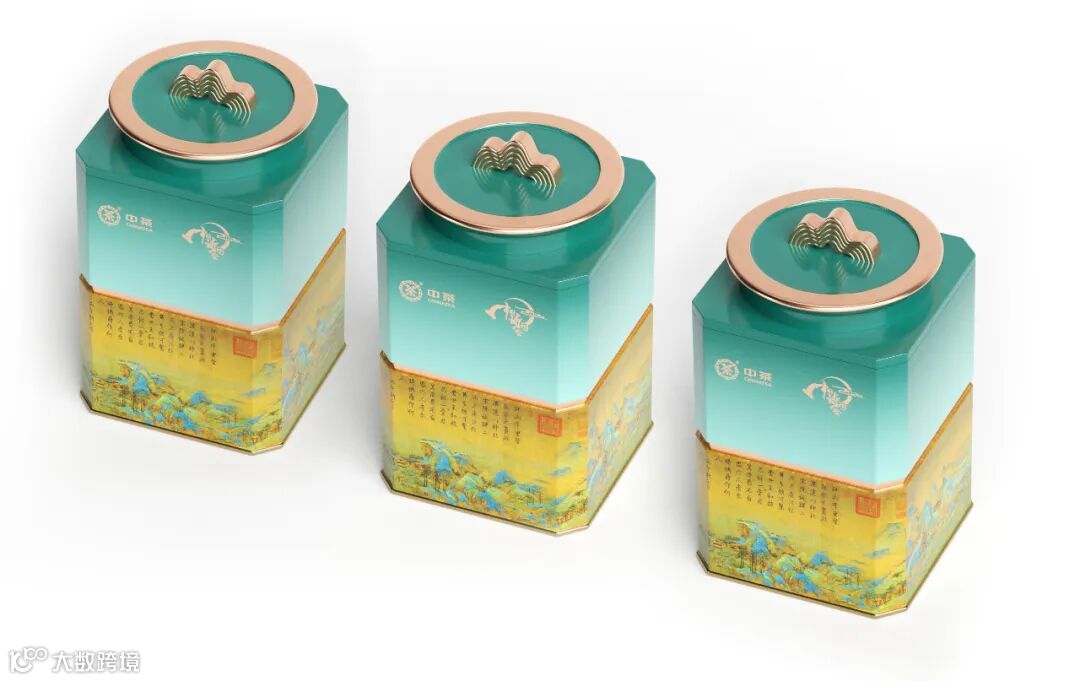 中茶千山纹样在礼盒表面用“立体起鼓”的工艺呈现