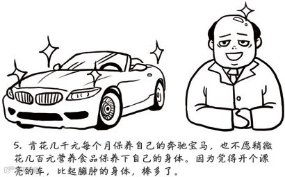 肯花几千元每个月保养自己的奔驰宝马,也不愿稍微花几百元营养品保养下自己的身体,因为觉得开个漂亮的车,比臃肿的身体,棒多了。
