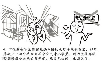 肯住着豪华装修但充满甲醛的几百平米的豪宅里,却不愿减少一两个平米买个空气净化器装置,因为觉得那些因装修得白血病的孩子们离自己的生活,太遥远了。
