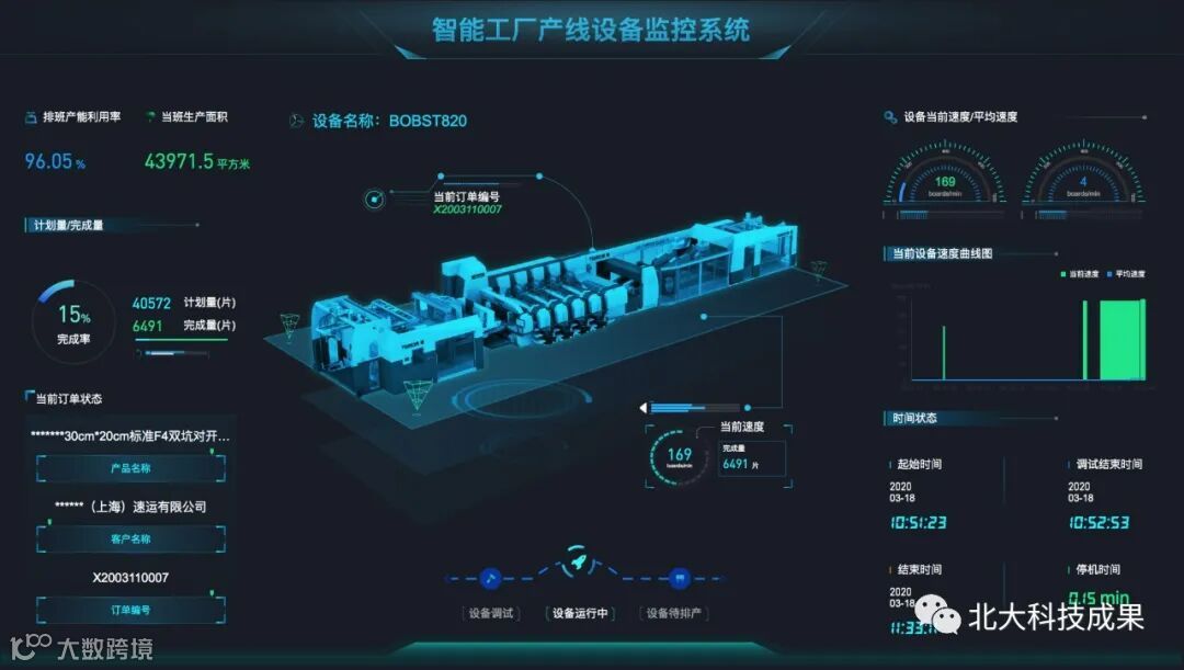 该成果可应用于工业企业数据中台搭建、工业企业生产流程可视化、离散制造产品溯源、工厂远程管理、全生命周期透明生产链管理、订单生产智能逾期预警、订单销量智能预测、原材料动态库存优化等。