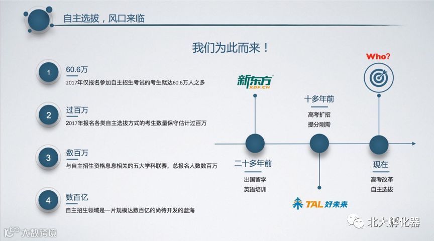 与自主招生、自主选拔相关联的五大学科联赛,总报名人数达数百万人。这是一个ARUP值相对较高的群体,保守地估计,市场规模达数百亿元,而且是一个尚待开发的蓝海市场。