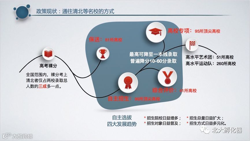 原来,上名校几乎只有一条路径:凭分数。学生考的分数越高、对应的大学越好。但现在,高考分数权重正在降低,通往清华北大等名校的方式达16种之多。